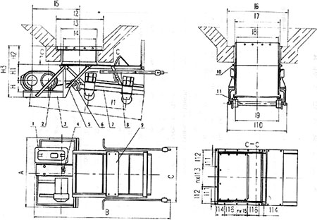 KK型往復(fù)式給煤機由機架、底板(給煤槽)、傳動平臺、漏頭號、閘門、托輥組成,當電機開動后經(jīng)彈性聯(lián)軸器、減速機、曲柄連桿機構(gòu)拖動傾斜5度的底板在輥上作直線往復(fù)運動,煤均勻地卸到其它設(shè)備上。本機可根據(jù)需要設(shè)有帶漏斗、不帶漏斗兩種形式。