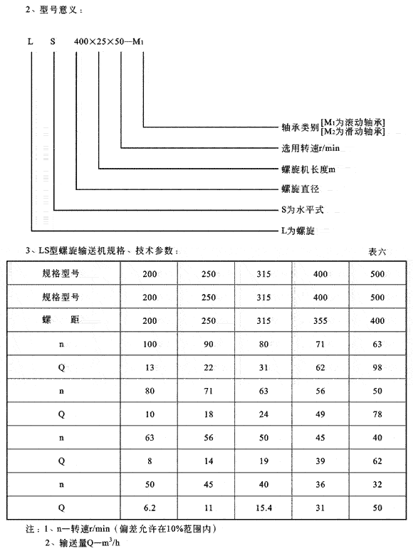 LS型螺旋機螺旋直徑從200毫米到500毫米,共有五種規格,長度從4米到70米,每隔0.5米一檔,選型時符合標準公稱長度,特殊需要可在選配節中另行提出。